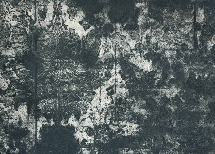 Zinc, being softer than copper, allows me to use various etching grounds. I work with both soft and hard ground techniques to transfer certain materials onto the metal’s surface, including aquatints, sugar lifts, and line drawings, as well as lithography methods.