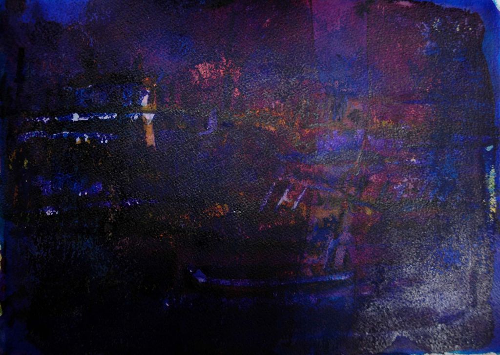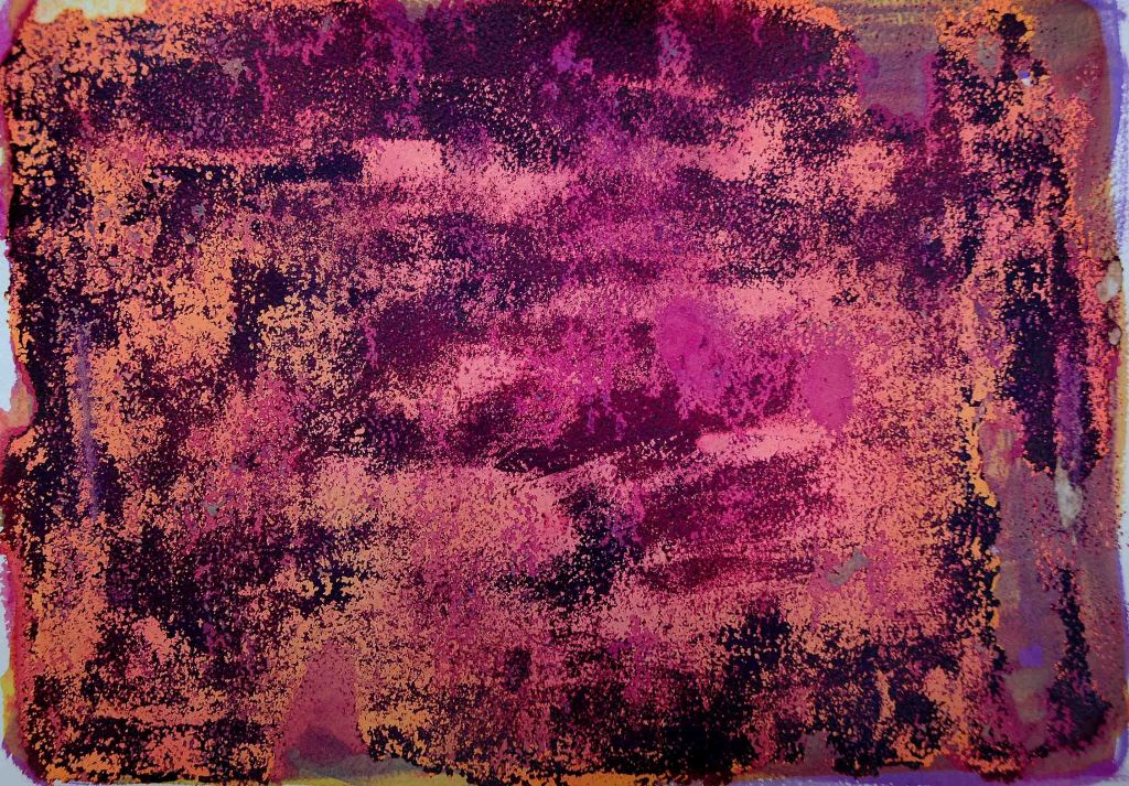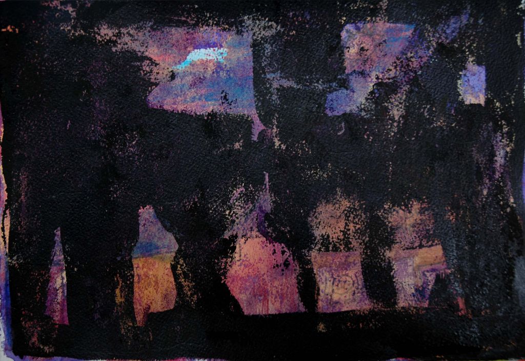 Inks; watercolour; alkali solutions; fabric dye; varnish; rubber solutions on Somerset/Bockingford. Sizes: 30 x 55cm – 55 x 75cm.
