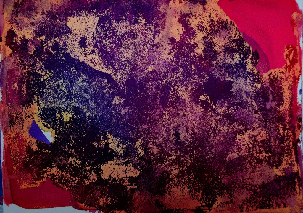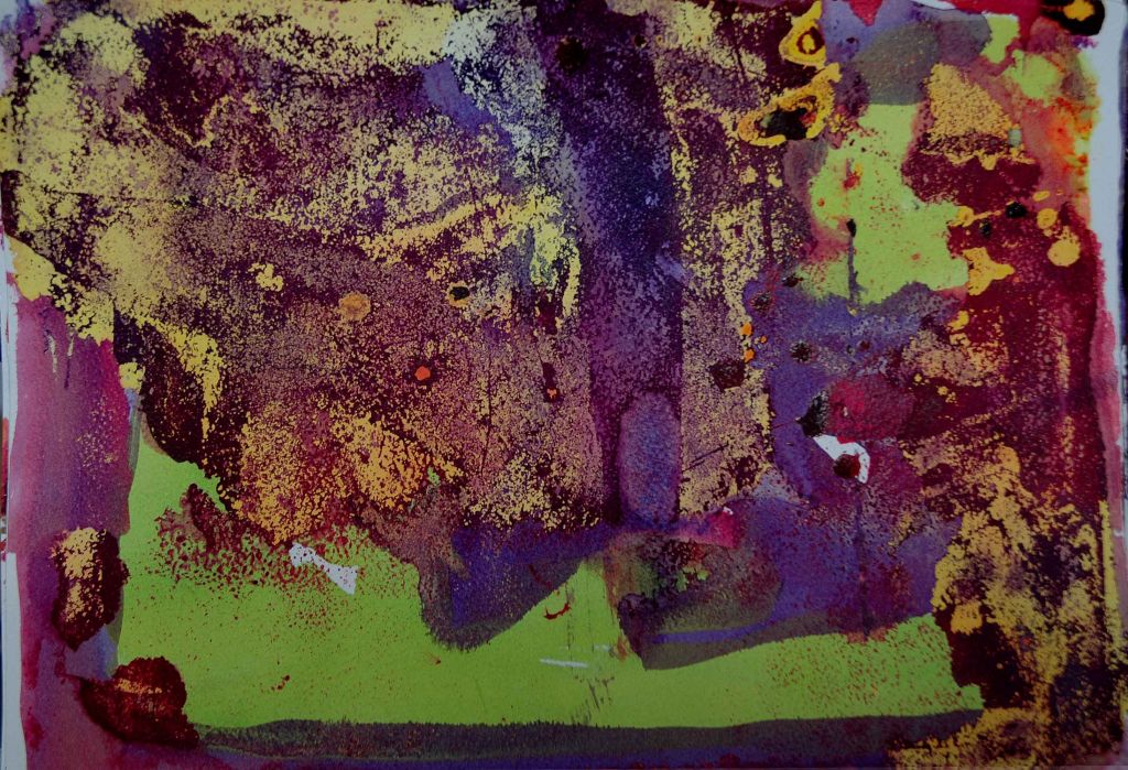 Inks; watercolour; alkali solutions; fabric dye; varnish; rubber solutions on Somerset/Bockingford. Sizes: 30 x 55cm – 55 x 75cm.